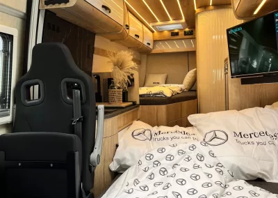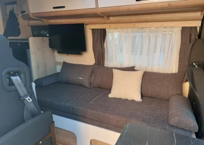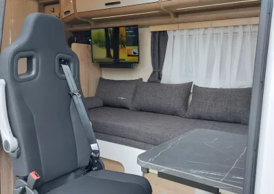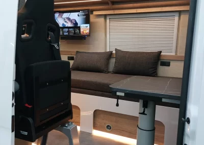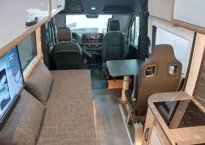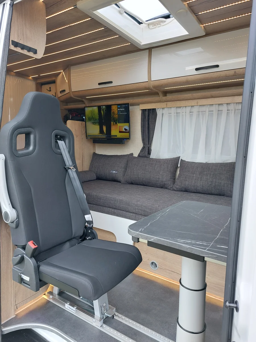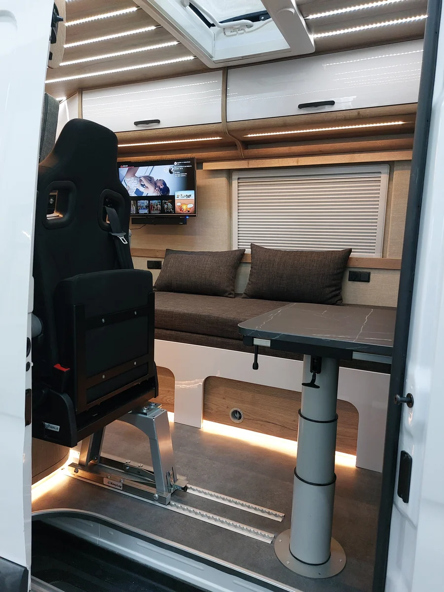 Das KRS Van Class Wohnmobil ist in erster Linie für zwei Reisende (Fahrer + Beifahrer) konzipiert und gedacht und kann optional mit einem dritten, voll verstellbaren, abnehmbaren Sitz ausgestattet werden.