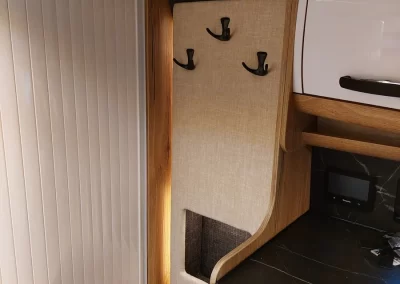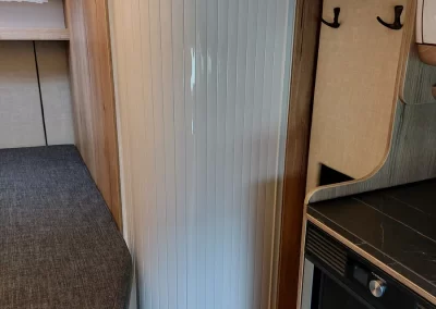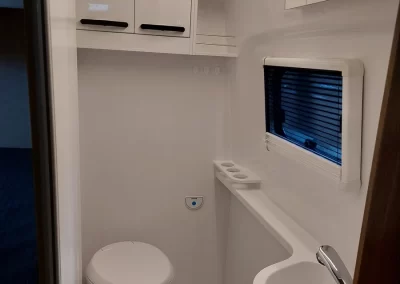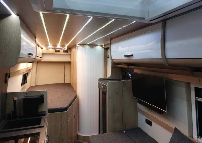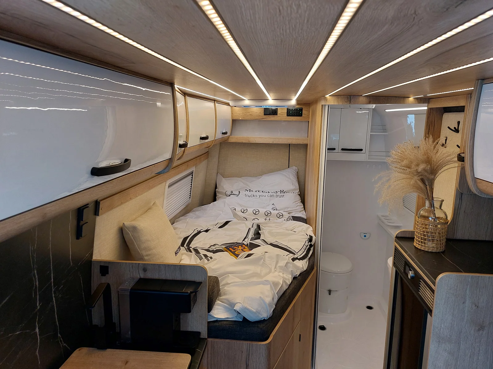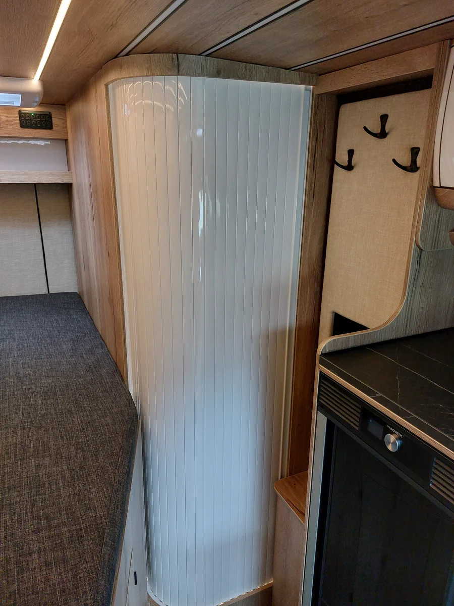Im Rahmen der fast 19 Monate dauernden Entwicklung wurde eine einzigartige Dusche komplett entworfen und gefertigt, die perfekt abgedichtet, kompakt und voll funktionsfähig ist, inklusive luftbeheizter Wanne. Mit Abmessungen in der Größenordnung von 80 x 130 Zentimeter und einem Rollo im Einstieg zählt sie zu den größten und komfortabelsten Duschkabinen in ihrer Kategorie.