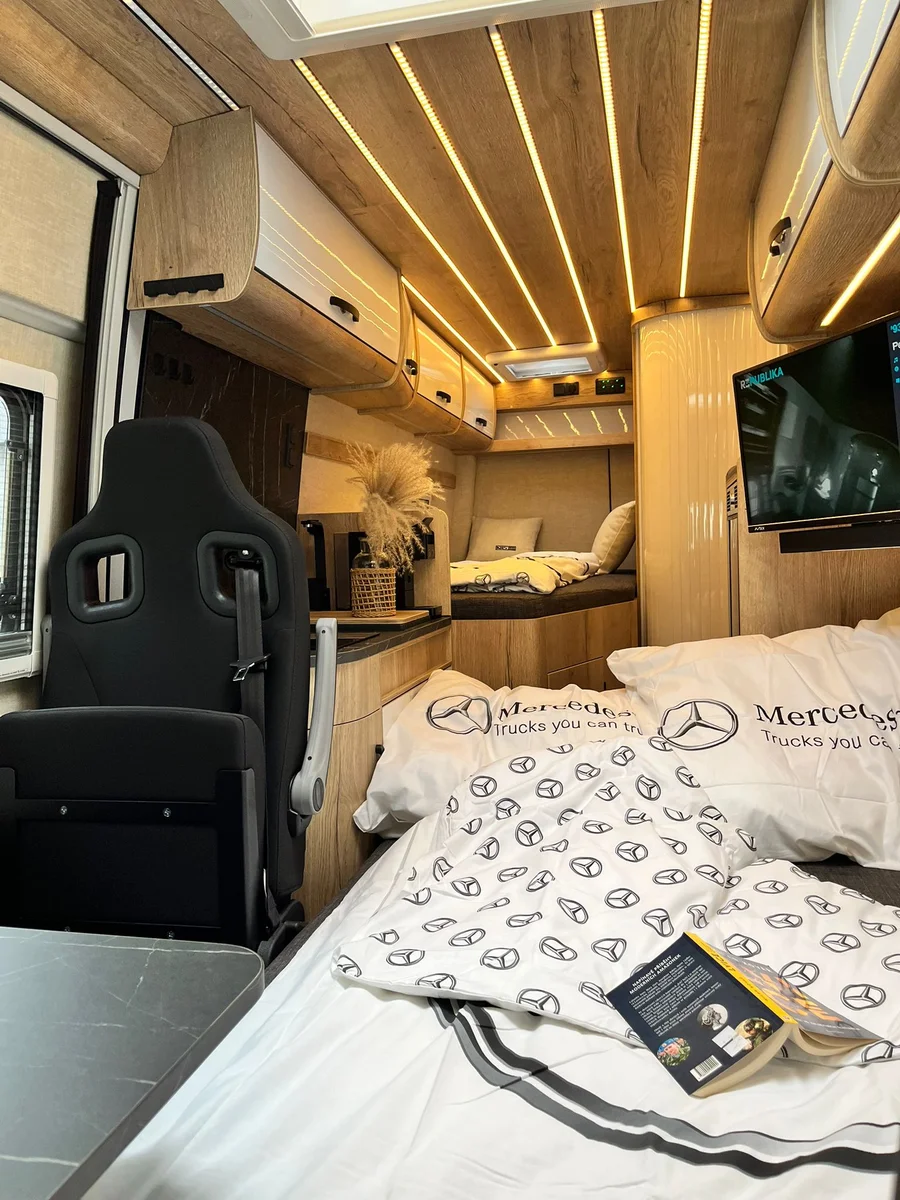 Bei der Gestaltung des Grundrisses legten die Konstrukteure und Designer Wert auf ungeteilten Raum, Luftigkeit und möglichst geringe Kontaktkontakte zwischen Möbeln, Geräten und Passagieren. Sorgfältig ausgewählte, hochwertige Möbel- und Polstermaterialien ergänzen und unterstreichen die hochwertige Handwerkskunst der Marke KRS mit einer 26-jährigen Geschichte (1999–2025) angemessen.